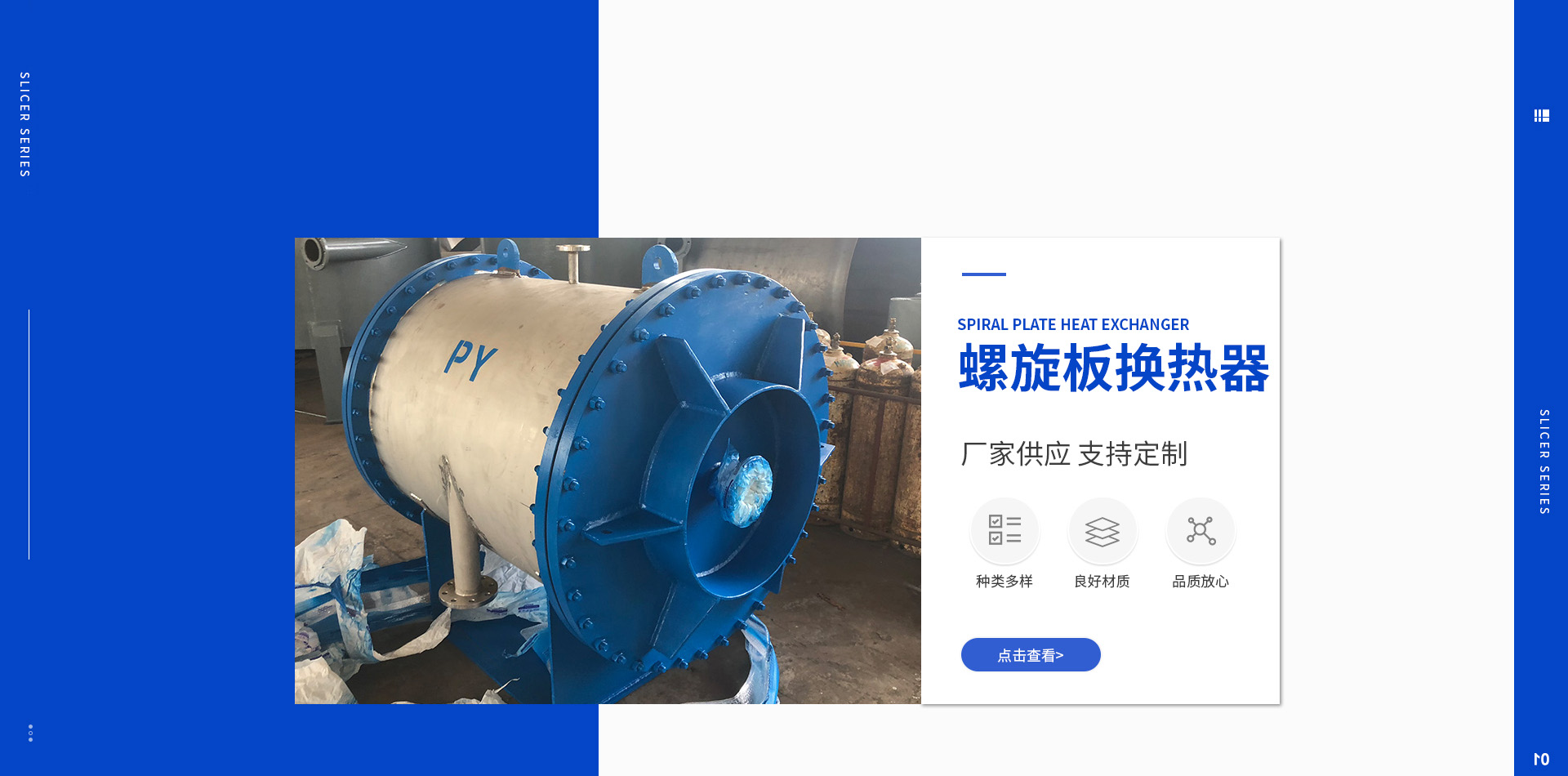 生產(chǎn)各類(lèi)切片機(jī),螺旋板換熱器的專(zhuān)業(yè)公司可根據(jù)用戶(hù)要求進(jìn)行非標(biāo)準(zhǔn)設(shè)計(jì)和生產(chǎn)。